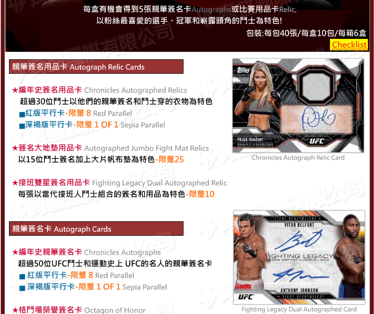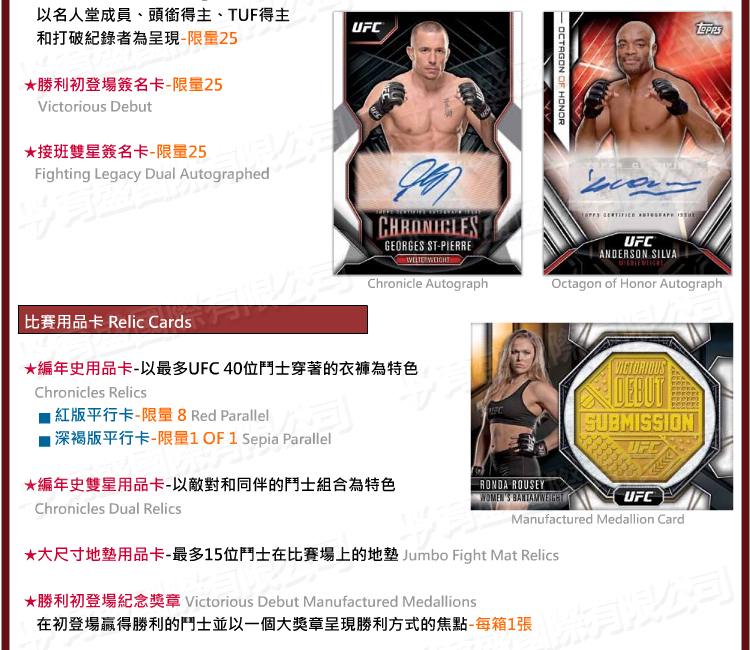 2015 Topps UFC Chronicles 格鬥拳擊 收藏卡